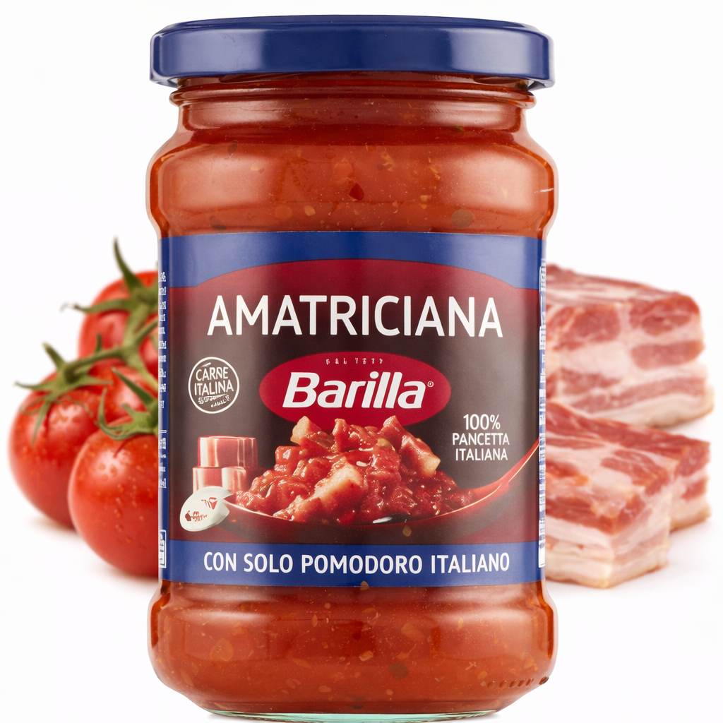 Barilla Sugo Amatriciana to klasyczny włoski sos pomidorowy inspirowany tradycyjną recepturą z regionu Lazio. Przygotowany na bazie dojrzałych pomidorów z dodatkiem aromatycznego boczku i przypraw, tworzy intensywny i wyrazisty smak idealny do dań z makaronem.